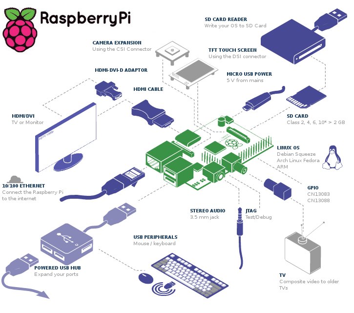 树莓派配备一枚700MHz博通出产的ARM架构BCM2835处理器,256MB内存(B型已升级到512MB内存),使用SD卡当作储存媒体,且拥有一个Ethernet,两个USB接口,以及HDMI(支持声音输出)和RCA端子输出。Raspberry Pi只有一张信用卡大小,体积大概是一个火柴盒大小,可以执行像雷神之锤III竞技场的游戏和进行1080p影片的播放。操作系统采用开源的Linux系统,比如Debian、ArchLinux,自带的Iceweasel、KOffice等软件能够满足基本的网络浏览,文字处理以及计算机学习的需要,分A,B两种型号,其中售价分别是A型25美元,B型35美元。