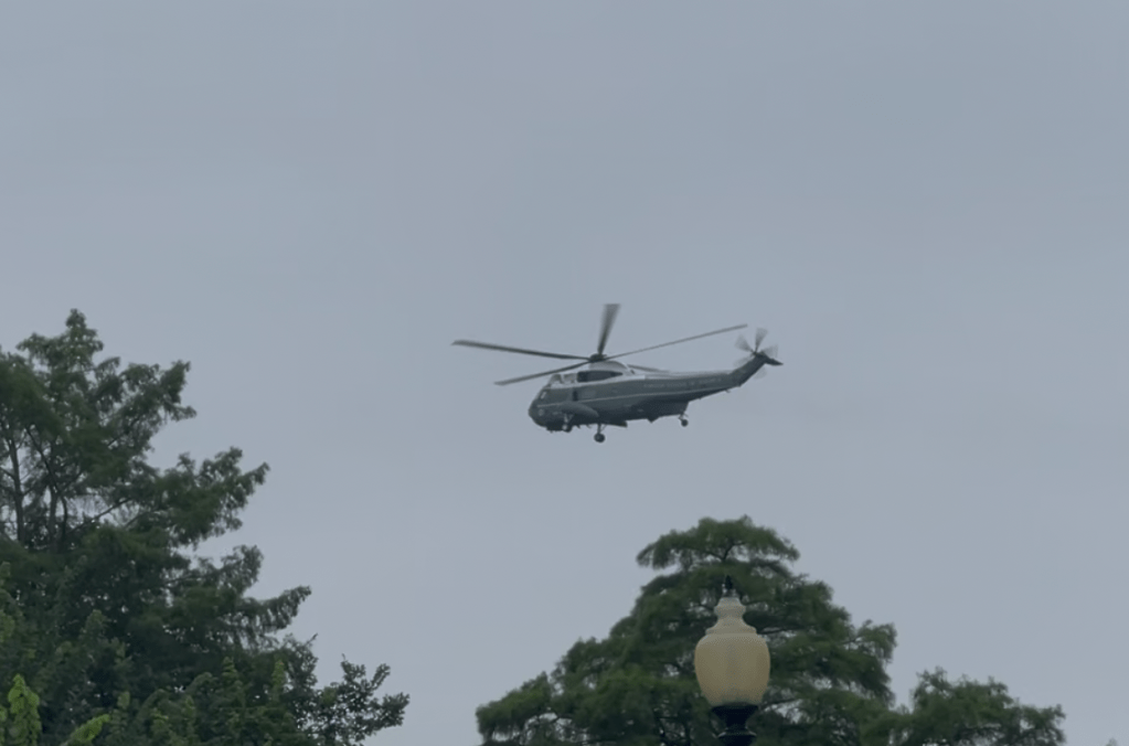 DC看到了大统领的直升机(他很有可能就在飞机上,去加拿大参加G7)