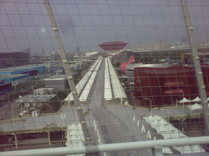 通往中国馆和世博轴的人行步道(卢浦大桥上摄):