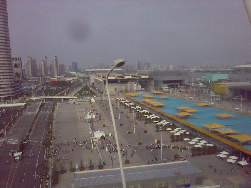 浦西园区,近处是1号门鲁班路入口,远处是日本产业馆